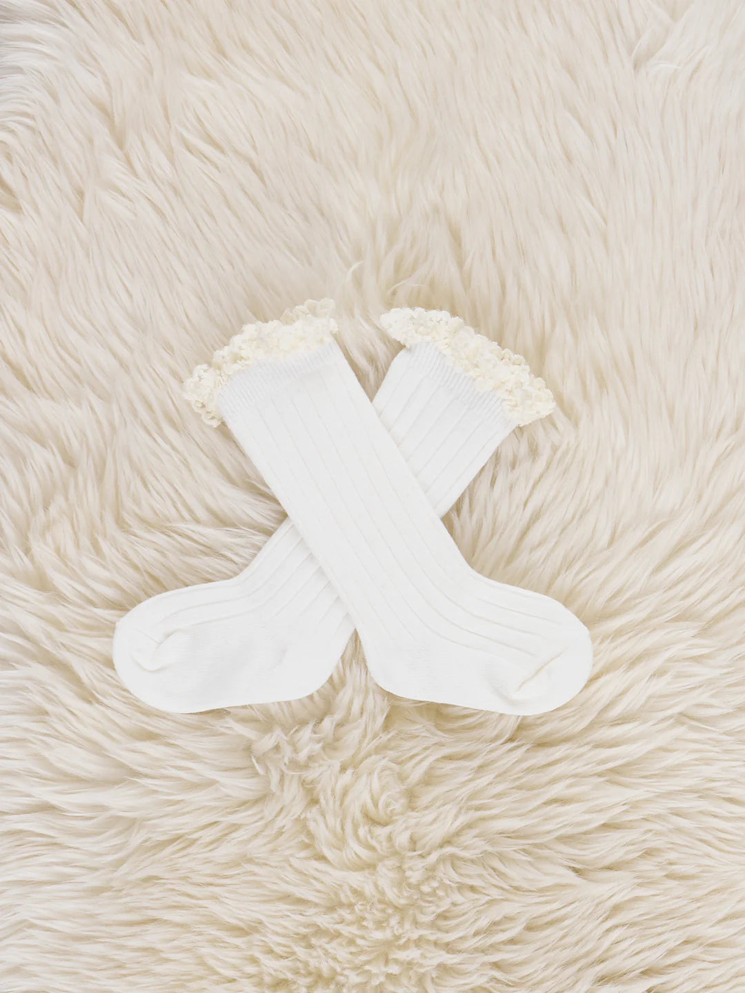 The Lace Trim Knee Socks in Green, Red or White are a perfectly charming touch to any outfit, featuring a beautiful lace trim along the top. These ribbed socks are soft, stretchy, and classic, making them a must-own!
