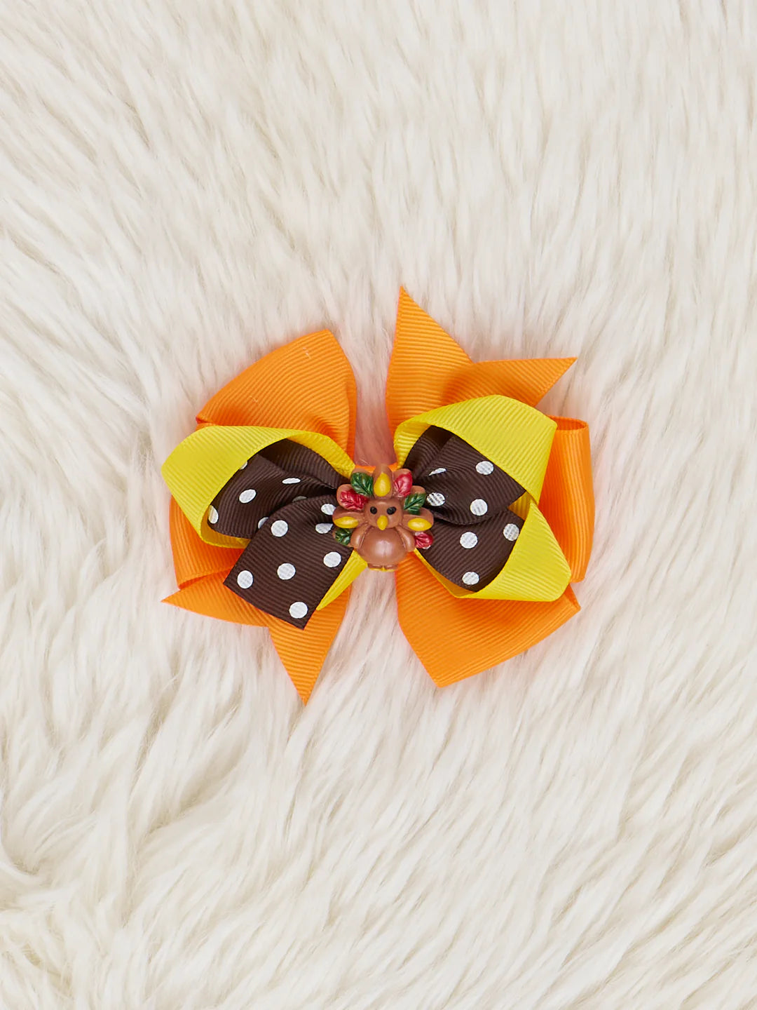 Orange & Brown Polka Dot Turkey Ribbon Bow